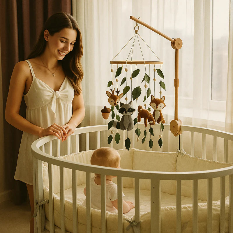 ✨ J’ai acheté un mobile bébé en bois dans votre boutique et je suis très satisfaite de mon achat. La qualité est superbe, et mon bébé est totalement émerveillé par le mobile. Les douces berceuses de la boîte à musique l’apaisent beaucoup.🌙